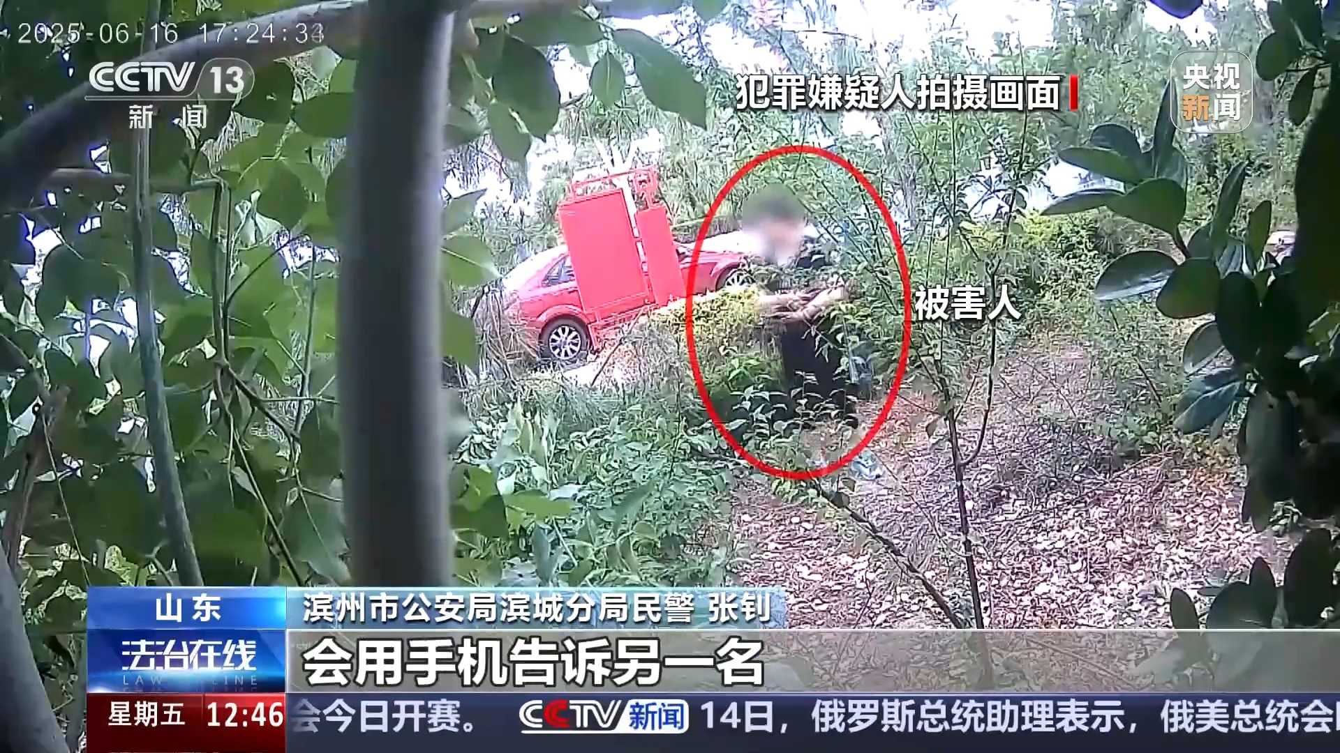 滨州市公安局滨城分局民警 张钊:放哨的犯罪嫌疑人通过受害人发的车辆信息,来观察受害人到了之后有没有警方跟随,以此来确保周围是否安全。确认安全之后,会用手机告诉另一名埋伏在摄像头附近的同伙,然后让那名同伙快速地将包裹拿走。